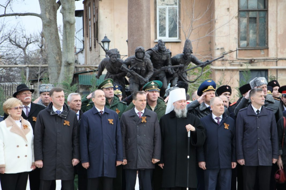 В церемонии открытия памятника приняли участие губернатор Краснодарского края Вениамин Кондратьев, председатель ЗСК Юрий Бурлачко, митрополит Екатеринодарский и Кубанский Василий, прокурор края Сергей Табельский, руководитель следственного управления СК РФ по Краснодарскому краю Андрей Маслов, военный комиссар края Алексей Чугункин, мэр Краснодара Евгений Наумов
