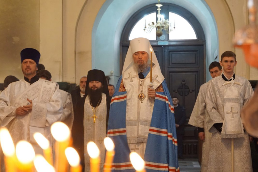 Его Высокопреосвященству сослужили: протоиерей Димитрий Руднев, иерей Рафаил Резниченко, протоиерей Александр Игнатов, протоиерей Иоанн Гармаш, протоиерей Иоанн Макаренко, протоиерей Георгий Козак, иерей Александр Клочков, иерей Вячеслав Феер, иерей Николай Симора, иерей Алексий Скрынник, иерей Олег Попов, диакон Андрей Тесля, протодиакон Максим Кадуров, диакон Никита Мельничук.