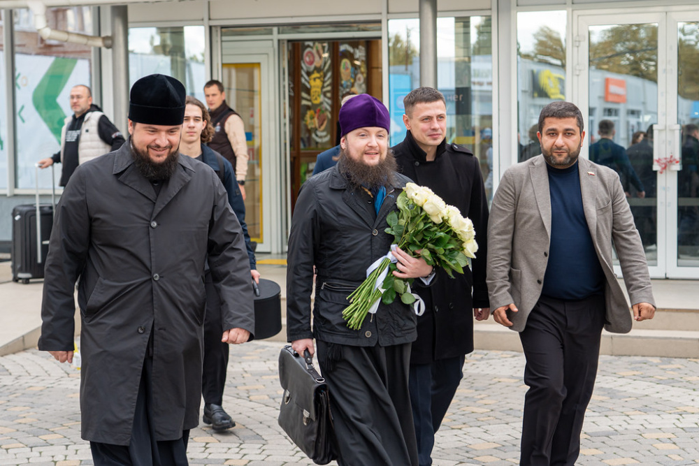 На Кубанской земле епископа Серафим встретили руководитель епархиального отдела по делам молодежи протоиерей Дмитрий Руднев, руководитель департамента молодежной политики Краснодарского края Роман Дмитриев и депутат городской Думы Краснодара Христофор Айвазов.