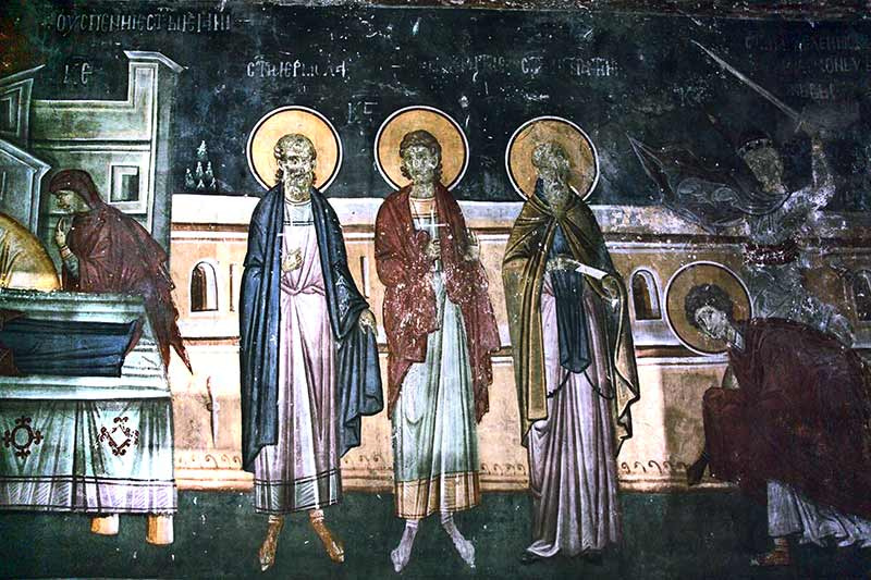 Священномученики Ермолай, Ермипп и Ермократ, иереи Никомидийские, в числе немногих остались в живых после того, как по повелению императора Максимиана (284-305) в Никомидийской церкви были сожжены 20000 христиан в 303 году (память 28 декабря). Они скрывались в отдаленных местах и не переставали учить язычников христианской вере. Мимо дома, в котором скрывался святой Ермолай, часто проходил юноша-язычник Пантолеон (святой великомученик Пантелеимон; память 27 июля). Однажды святой Ермолай вышел навстречу юноше и попросил его зайти к нему в дом. В беседе святой Ермолай стал разъяснять своему гостю ложность, нечестие и суетность поклонения языческим божествам. С этого дня Пантолеон стал ежедневно заходить к святому Ермолаю и принял от него святое Крещение. Когда совершался суд над святым великомучеником Пантелеимоном, были схвачены и святые Ермолай, Ермипп и Ермократ. Накануне святому Ермолаю явился Господь Иисус Христос и открыл ему, что на следующий день он пострадает за Него и примет мученический венец. После святого Ермолая были схвачены и приведены на судилище и святые Ермипп и Ермократ. Всем троим было предложено отречься от Христа и принести жертву идолам. Но они решительно отказались, исповедали свою веру в Господа Иисуса Христа и готовность с радостью умереть за Него. Язычники стали угрожать святым иереям муками и смертью. Внезапно началось сильное землетрясение, и идолы в капище упали и разбились. Об этом было доложено императору. Разгневанный Максимиан отдал святых мучеников на истязания и вынес им смертный приговор. Мужественно претерпев все мучения, святые иереи - мученики Ермолай, Ермипп и Ермократ были обезглавлены около 305 года.