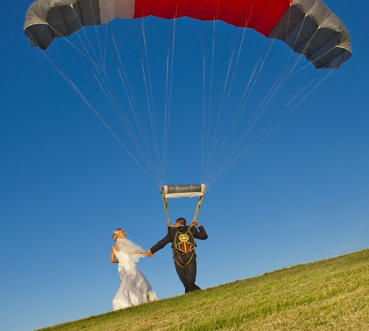 Мы быстро поженились. Свадьба была необычная: у нас не было застолья, шампанского, белого платья с фатой у меня и костюма у Юры. В ЗАГСе мы расписались и сразу поехали с друзьями в аэроклуб. Прыжками отметили важное событие в жизни.